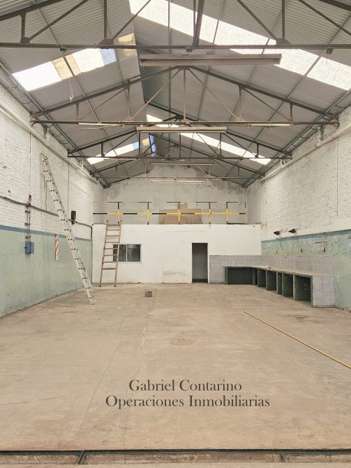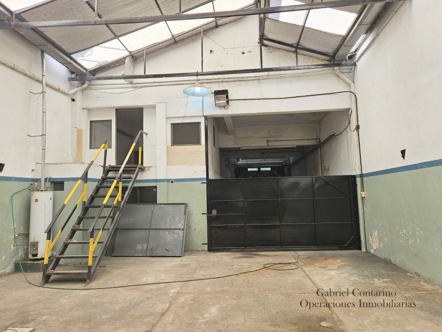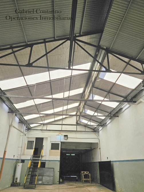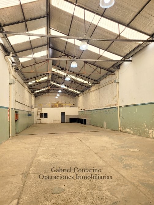 Galpon en una planta. Piso cemento alisado. Techo de losa altura 3,80 metros (los primeros 13,90 metros) y tipo sheed altura 5 metros el resto. Oficinas, baños y vestuarios. Muy buen estado general. Techo y desagües reparados a nuevo. Portones pintados.
