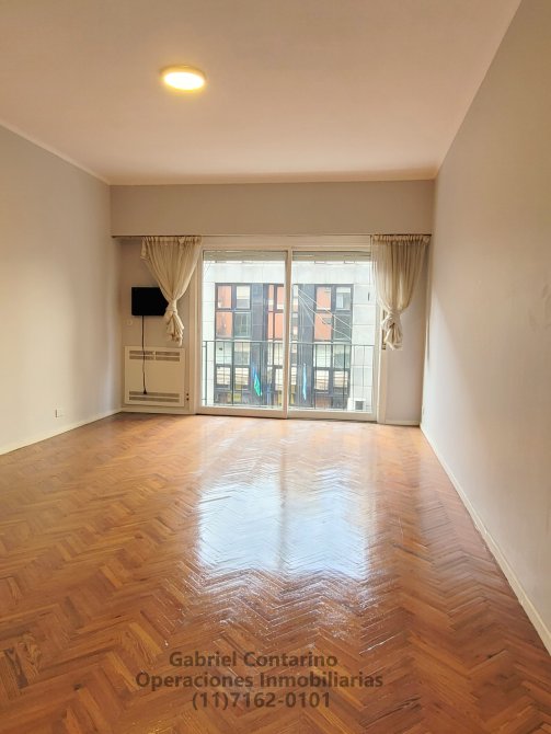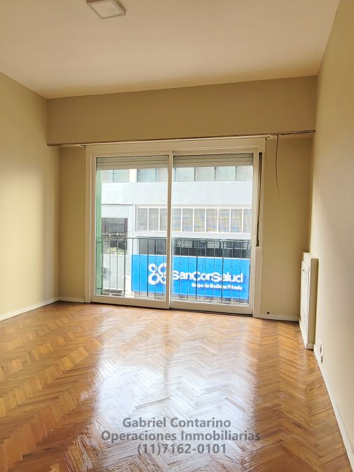 Ofrecemos este amplio y luminoso departamento, sito en un edificio antiguo de buena categoría, con muy buen estado de conservación. Sólo 3 unidades por piso. 2 ascensores. Ingreso por puerta blindada. Recepción con piso de mosaico de mármol. Estar comedor con piso de madera tipo parquet laqueado. Posee radiador de calefacción. Aire acondicionado tipo ventana. Balcón frances, amplio ventanal a la calle, excepcional luz y ventilación natural. Paso de distribución con piso de mosaico de mármol.