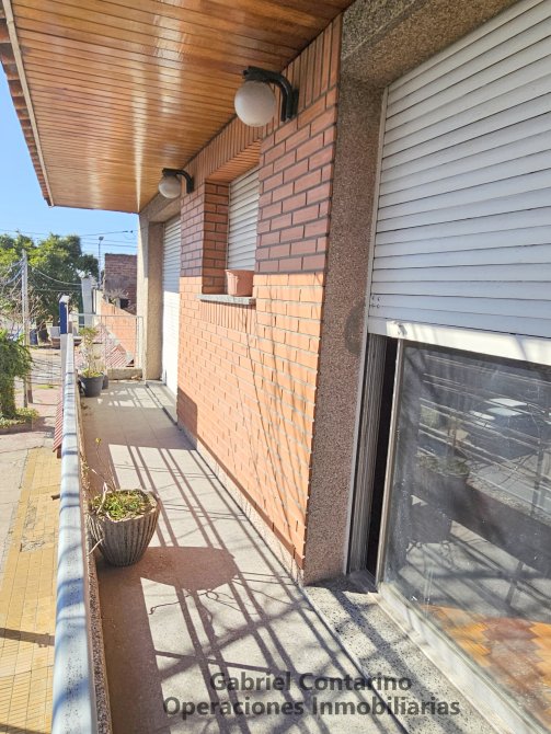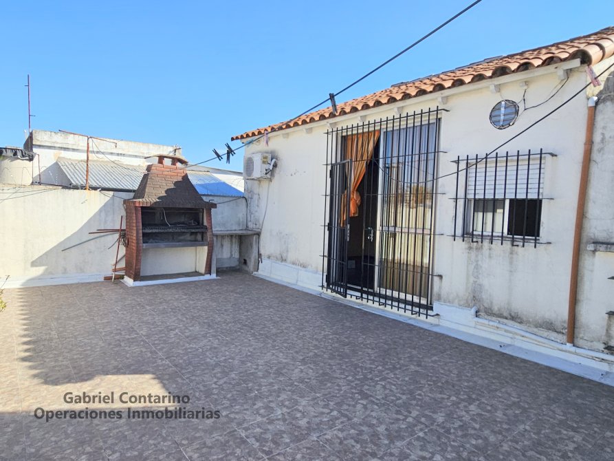 3) En Planta Alta Gran Departamento tipo casa de 4 ambientes con amplio patio terraza y balcón. Acceso por escalera desde pasillo común. Palier privado. Acceso a hall. Doble ingreso por cocina y por Estar Comedor. Cocina con mueble bajo mesada. Espacio para mesa. Estar comedor amplio con piso de mosaico granito. Acceso al balcón con doble circulación. Dormitorio principal con piso tipo parquet de madera. Placard. Acceso al balcón. Otro dormitorio con piso de mosaico granito. Ventana a Comedor diario. Baño completo con receptaculo de ducha. Gran comedor diario piso cerámico. Gran patio terraza con parilla. Estado: Buen estado general.