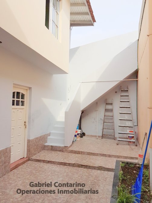 2) Al fondo Departamento tipo casa de 3 ambientes. Ingreso por pasillo común, accede a gran patio con piso cerámico. Lavadero semicubierto. Estar comedor cómodo, cocina integrada con mueble bajo mesada. Paredes y piso revestido en cerámica. Barra desayunadora. Escalera de hierro. En planta alta: Pasillo distribuidor. 2 Dormitorio al frente. Buena luz y ventilación natural. Baño instalado completo con ducha. Calefacción. Estado:.Buen estado general.