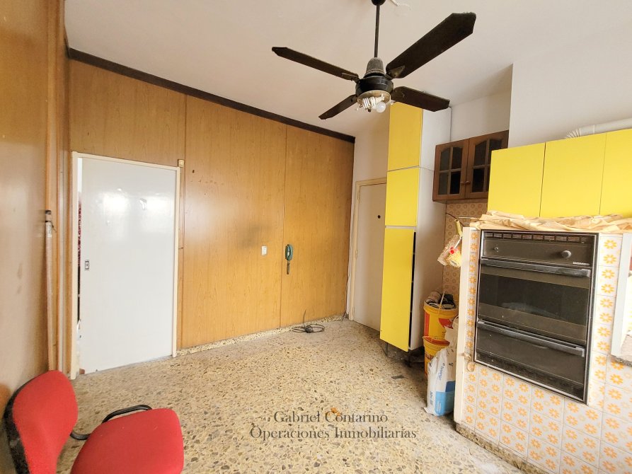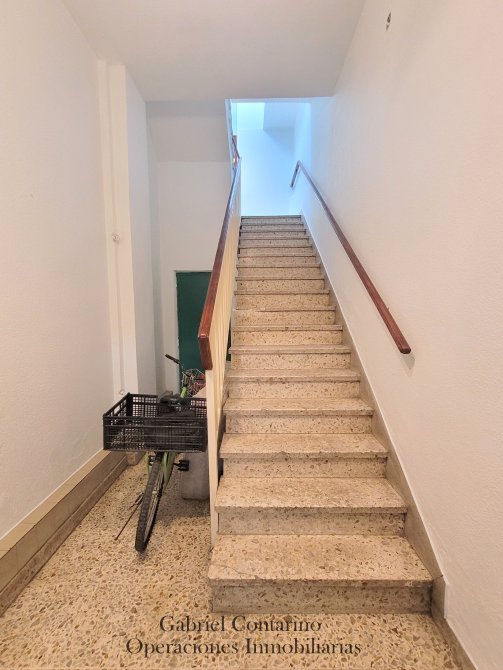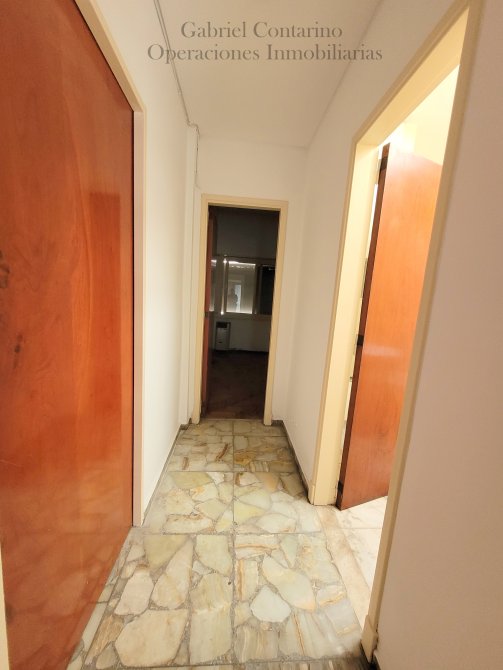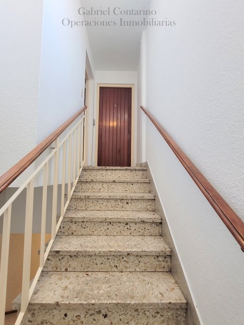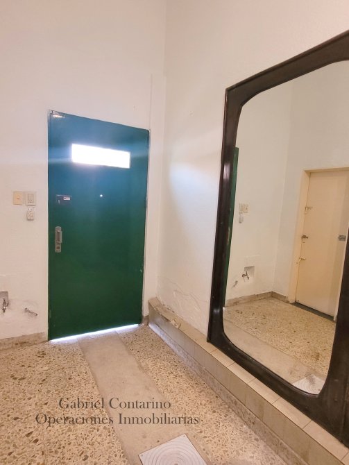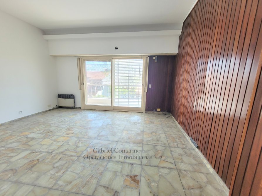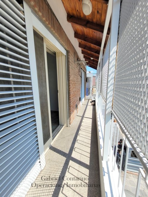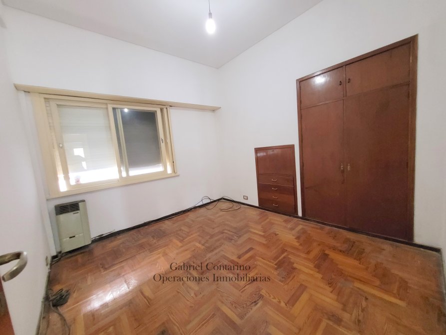Gran departamento tipo casa en Planta Alta por escalera. Ingreso por puerta blindada. Hall recibidor donde se encuentra una baulera propia. Palier privado con doble ingreso, por Living o por cocina comedor diario. Amplio living piso de baldosas de escalla de mármol. Amplia puerta balcón al frente. Calefactor de tiro balanceado. Pared revestida con madera. Paso de distribución que comunica con dormitorios y con el baño. Al frente amplio dormitorio con placard, piso de madera tipo parquet. Calefactor de tiro balanceado y acondicionador de aire tipo ventana. Amplia puerta balcón al frente.