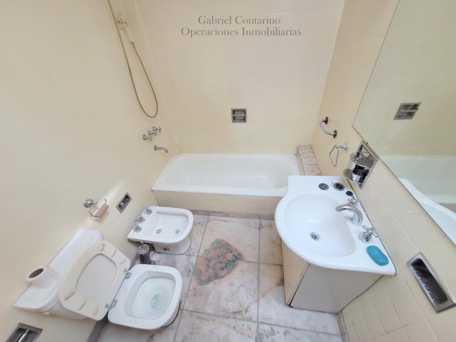Al contrafrente segundo dormitorio con placard, buen espacio de guardado. Piso de madera tipo parquet. Calefactor de tiro balanceado y vista al patio posterior. Baño completo con bañera y mueble tipo alacena. Comunicado a través del living y con entrada independiente amplia cocina comedor diario, piso de mosaico granítico. Mueble bajo mesada y alacena. Pared revestida con madera. Cuenta con horno, anafe y extractor de humo.