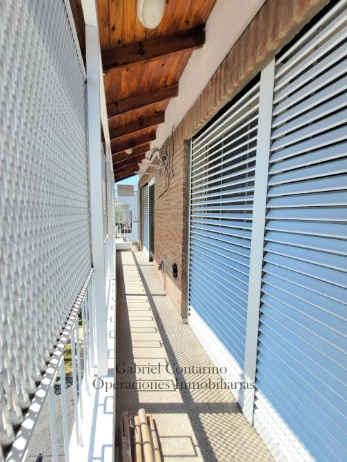 Balcón corrido en todo el frente posee alero para otorgar sombra y cuenta con una cerramiento de rejas con malla para brindar seguridad y privacidad.