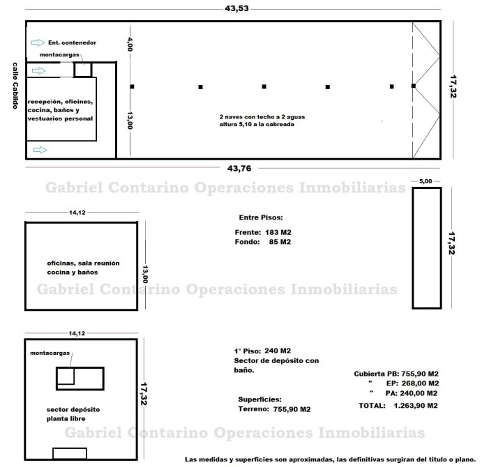 Entre piso: Oficinas. 1° Piso: Depósito con montacargas.